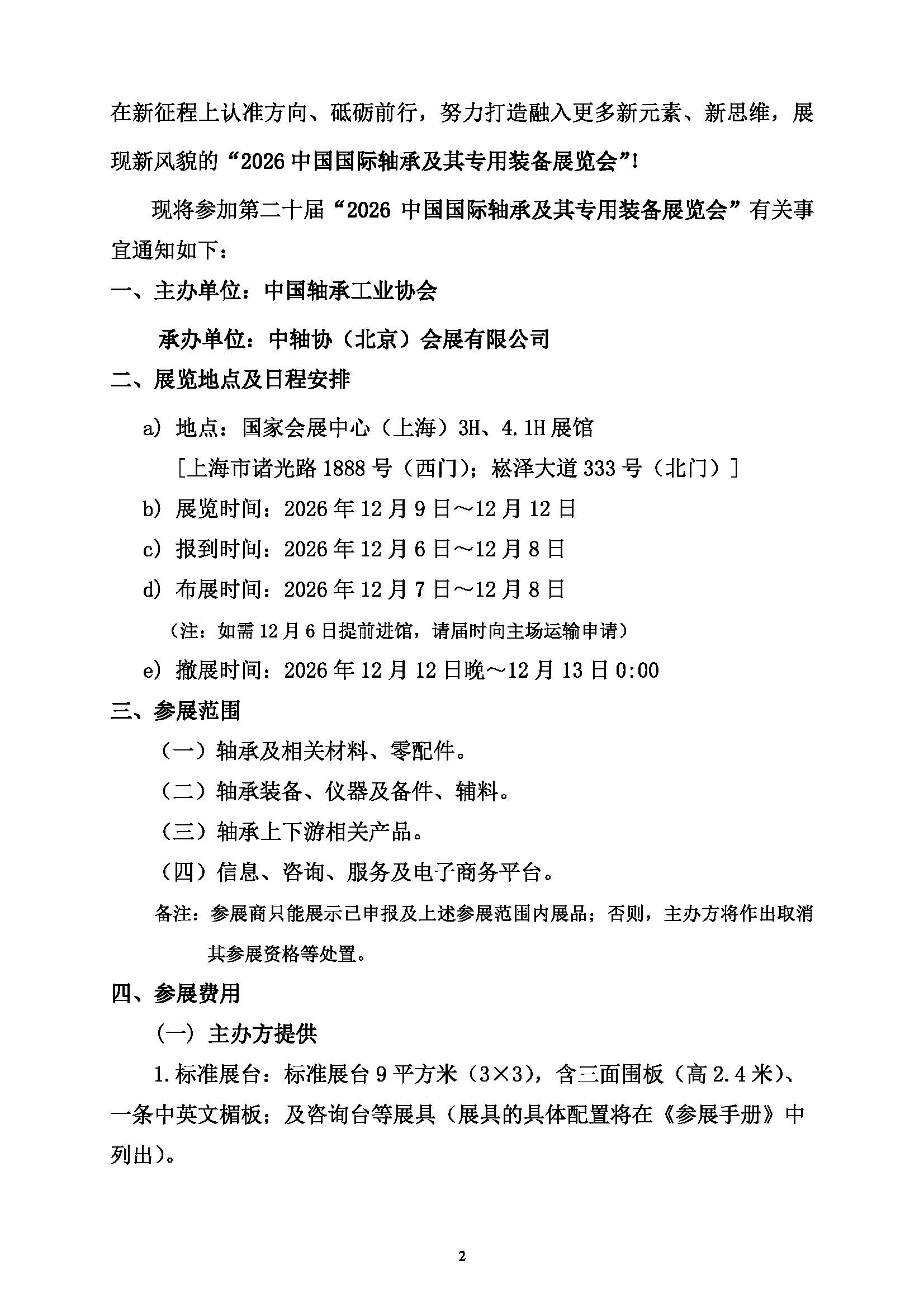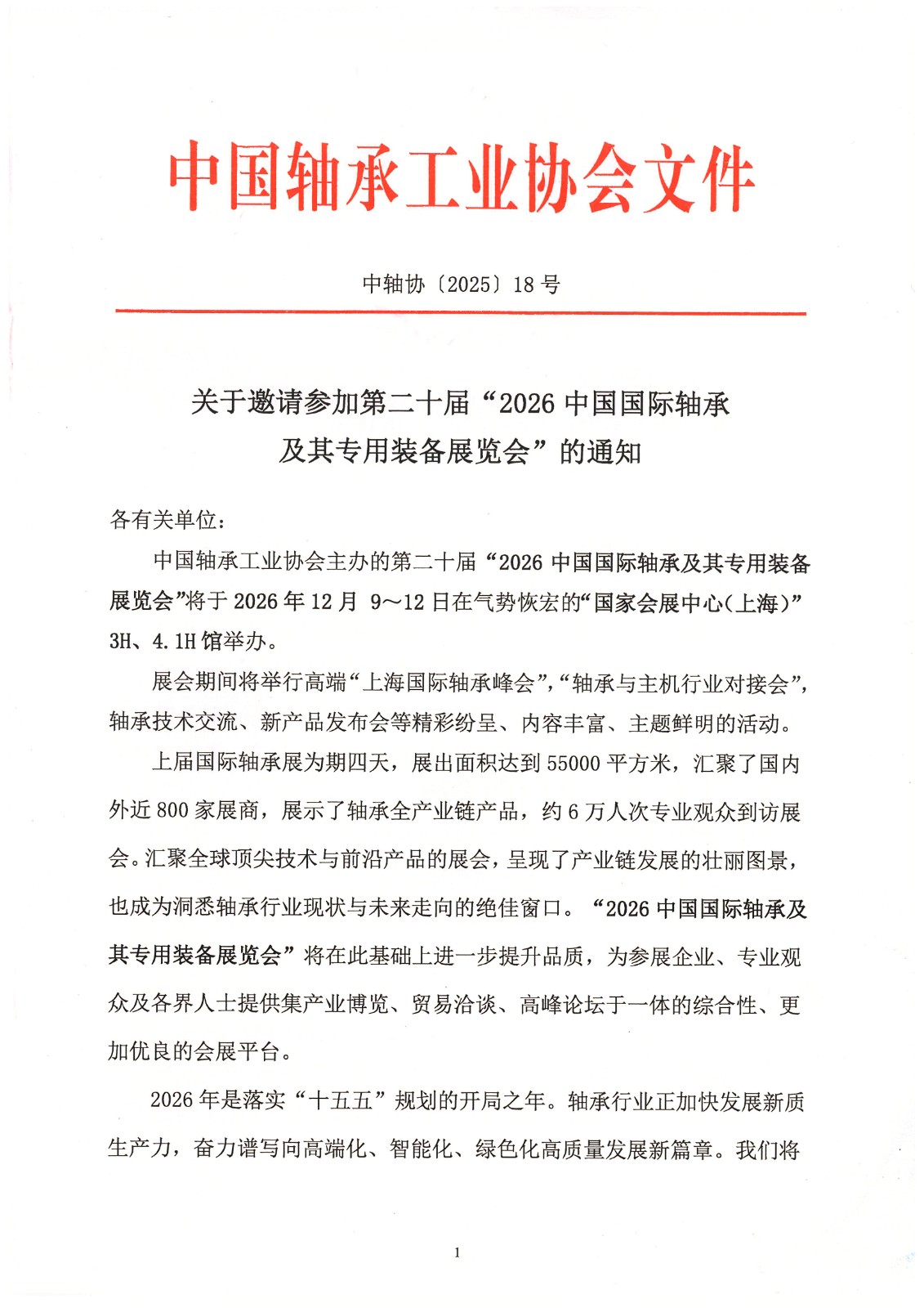 关于邀请参加第二十届“2026中国国际轴承及其专用装备展览会”的通知
